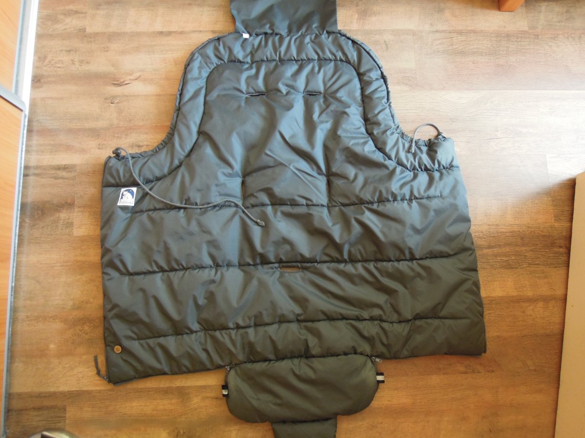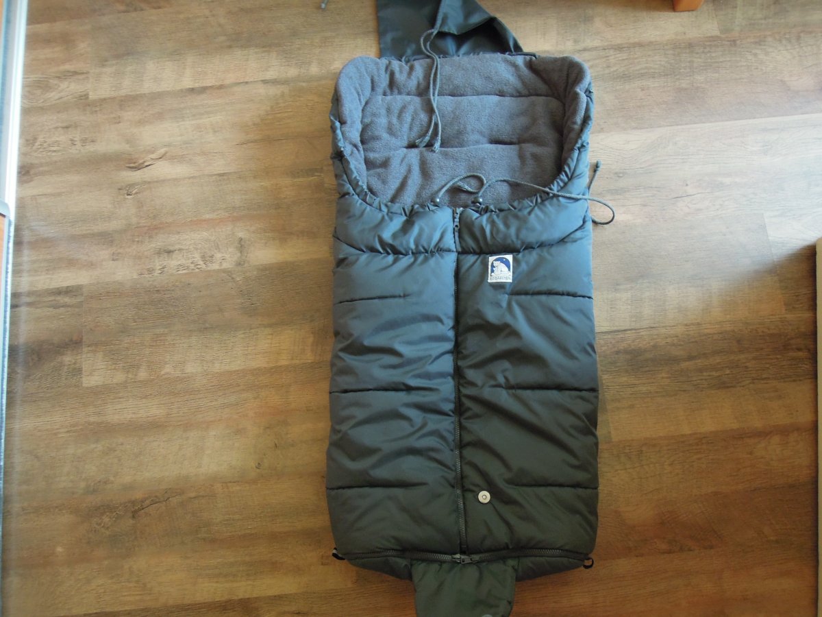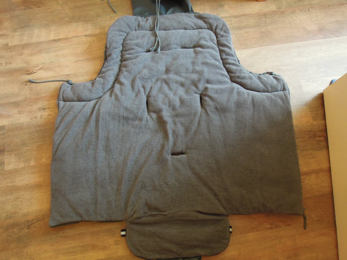 pouzivany, bez dier, funkcny zips, farba siva, pratelny vrchna vstva nepremokava, nedostatok na dpodnej casti je "zaspineny" od koliesok (vid foto), pouzivala som ho aj na golfuku aj na sportovy kocik, lahko a pene sa priviaze na kocik.