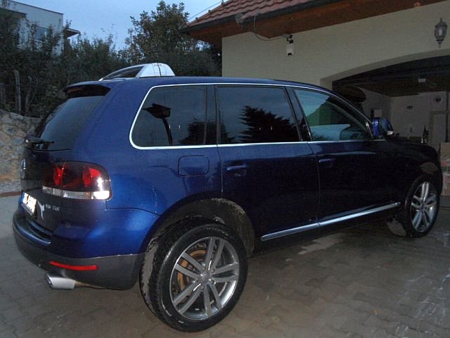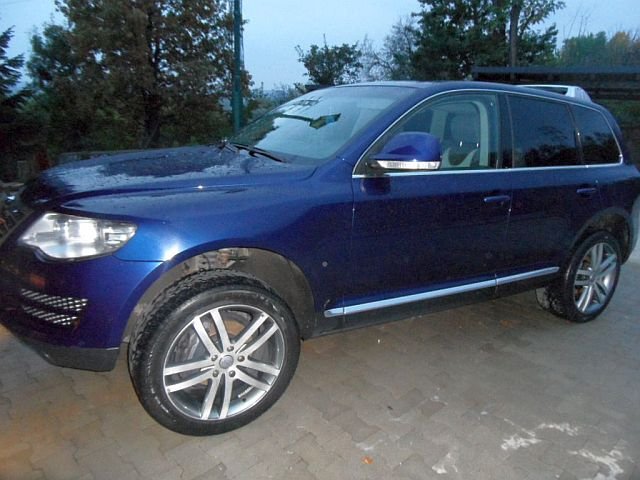 Predám Volkswagen Touareg (N1 verzia), V6 3.0 TDI, 176 kW, tm. modrá met., r.v. 2009, 131 000 km, automat. 6-st. prev., 4x4, redukcia, uzáv., priem. spotr. 9L. Interiér: sivá látka + koža + elox. hliník. 10x airbag, el. okná 4x, el. zrk., predný, zadný park. asist., dig. klíma, tempomat, xenony, hmlovky, fólie, CD menič, DVD, USB, MP3, dotyk. obr. Sez. obutie na el., pneu. 50%. 2x kľúč, centrál na DO, serv. knižka, STK, EK do 5.2015. 2. maj., kup. na Slovensku. Opočet DPH možný. Cena s DPH.