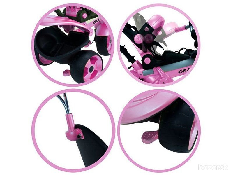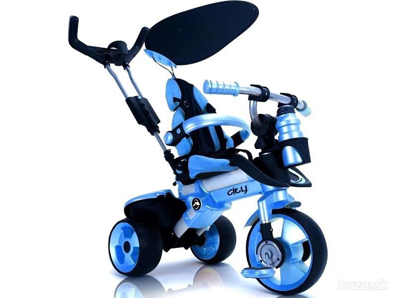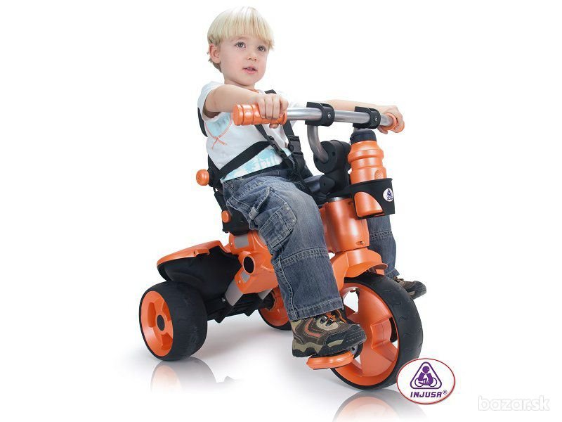 Detská multifunkčná trojkolka určená pre deti od 6 mesiacov, dostupná v štyroch farbách: modrá, ružová zelená a oranžová. Vďaka rozličným variáciam, ako je možné trojkolku upraviť, bohatej výbave a kvalitnému spracovaniu nie je trojkolka len skvelou hračkou, ale aj ideálnym prvým dopravným prostriedkom pre malé deti. Trojkolka je vybavená hliníkovým rámom, päťbodovým bezpečnostným pásom, protišmykovými pedálmi, ergonomicky tvarovanou rukoväťou, ochrannou strieškou proti slnku a kolesami s gumeným lemom. Nesmie sa používať na verejných komunikáciách, parkoviskách a cestách s prudkým klesaním! Cena dodania: 8,50 € s DPH. Na objednávku. Dodacia doba: 1 - 2 týždne Pôvodná cena: 157 EUR