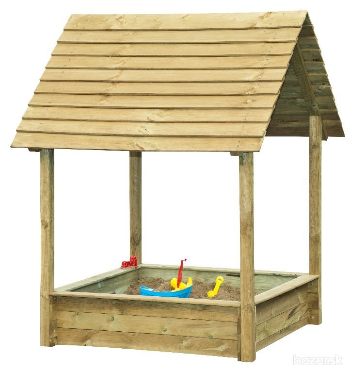 Detské drevené pieskovisko ošetrené impregnáciou. Súčasťou pieskoviska je aj kryt. Pôvodná cena: 94,40 EUR Cena prepravy po celej SR: 21,50 EUR. Akciová ponuka platí do vypredania zásob - posledný kus skladom! Ošetrenie: Zelená impregnácia Rozmery: 120 x 120 x 180 cm Dodáva sa aj s krytom Bez dna.