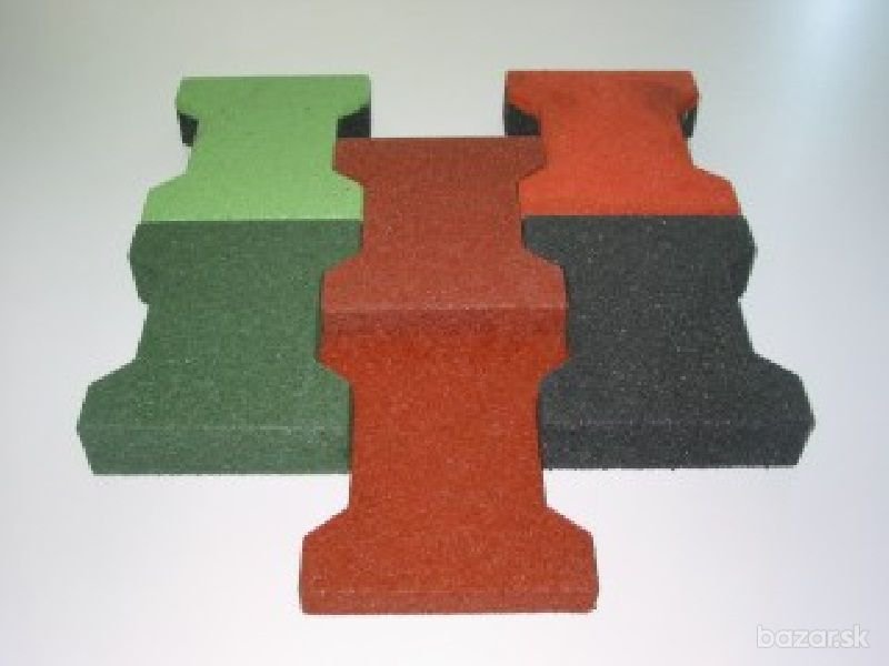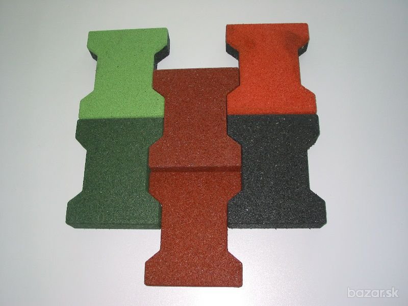 Naša spoločnosť je už od roku 1995 výhradným zástupcom českého výrobcu pružných bezpečnostných povrchov na slovenskom trhu. Za tie roky sme uskutočnili množstvo realizácií v súkromnom sektore i v štátnych inštitúciách. Pružné povrchy si získali veľkú obľubu a to aj z nasledujúcich dôvodov: - jednoduchá pokládka (od hrúbky 30 mm sú vŕtané a kolíkované, takže nie je potrebné lepenie) - prakticky žiadna údržba (stačí opláchnuť prúdom vody) - dlhá životnosť - široké spektrum použitia: detské ihriská, terasy, okolia bazénov, športoviská, multifunkčné ihriská, univerzálne hracie plochy, fitness centrá, v jazdectve sa využívajú v konských boxoch nielen na podlahe, ale aj ako obloženie stien, na chodbách stajní, v kolotočoch, bazénoch atď., protihlukové steny, vibroizolácia, podložka pod plávajúce podlahy tlmiaca krokový hluk, priemysel atď.). Nakoľko sme výhradným dovozcom, vieme poskytnúť zľavy v závislosti od druhu a množstva objednaného tovaru. V prípade záujmu Vám podáme viac informácii. Zámková dlažba Zámková dlažba pre členité plochy s vyšším zaťažením. Rozmer: 200 x 165 x 43 mm Hmotnosť / 1 ks: 1,05 kg Počet ks / 1 m2: 35