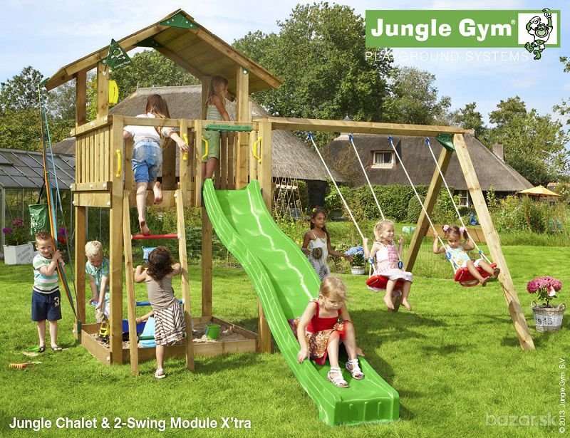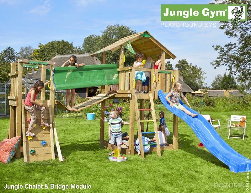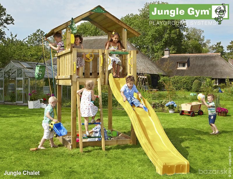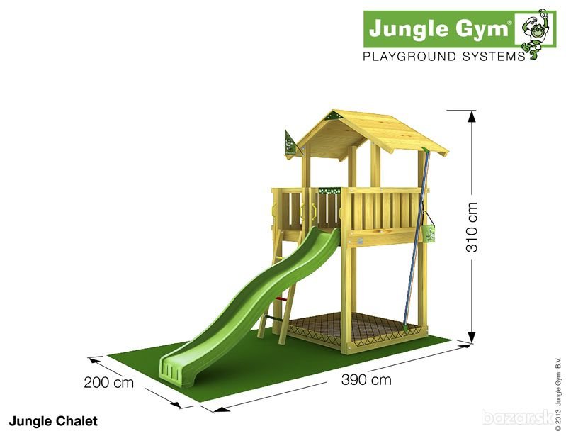 Štýlová drevená zostava v sebe zahŕňa prvky využiteľné za každého počasia – šmýkačku, rebrík, pieskovisko a vedierko. Jungle Chalet, domček pripomínajúci odvážne dobrodružstvá v švajčiarskych Alpách, láka svojimi širokými možnosťami pre rozptýlenie a zábavu. Balkónová časť je ideálna počas slnečných dní. Doplnky ako vedierko Bucket, volant Steering Wheel a telefón Fun Phone poskytujú deťom veľa zábavy na spestrenie voľného času. Plošinka s priestorom na státie vyšším ako 160 cm je zastrešená drevenou strieškou. Veža Jungle Chalet je veľmi pôsobivým záhradným doplnkom. V cene nie je zahrnutá montáž, doprava a náter. V prípade záujmu Vám radi poskytneme kompletnú cenovú ponuku. Pre informácie ohľadom montáže nás kontaktujte. (pôvodná cena: 666,77 EUR)