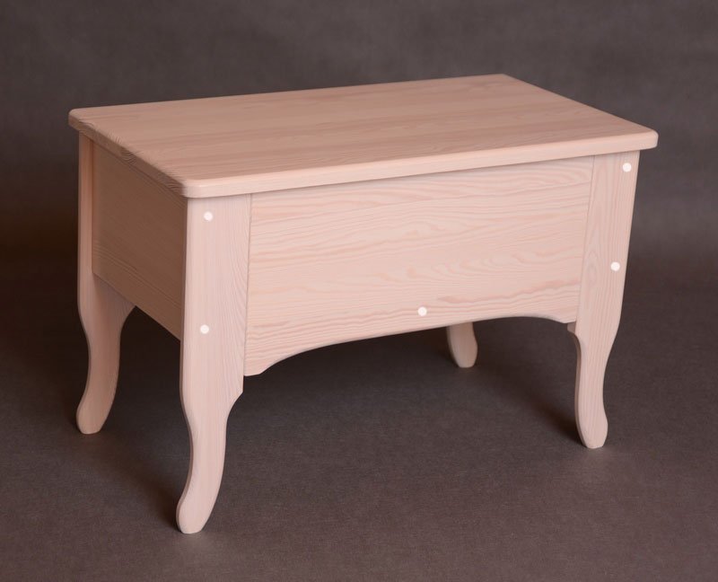 Predám novú, masívnu truhlicu GOLDIE s úložným priestorom, na ktorej sa môže aj sedieť. Rozmery /VxŠxH/:46x70x38/. Vhodné do detskej izby, chalupy a pod. Pôvodne 99€, teraz 79,95€. Aj model s operadlom.