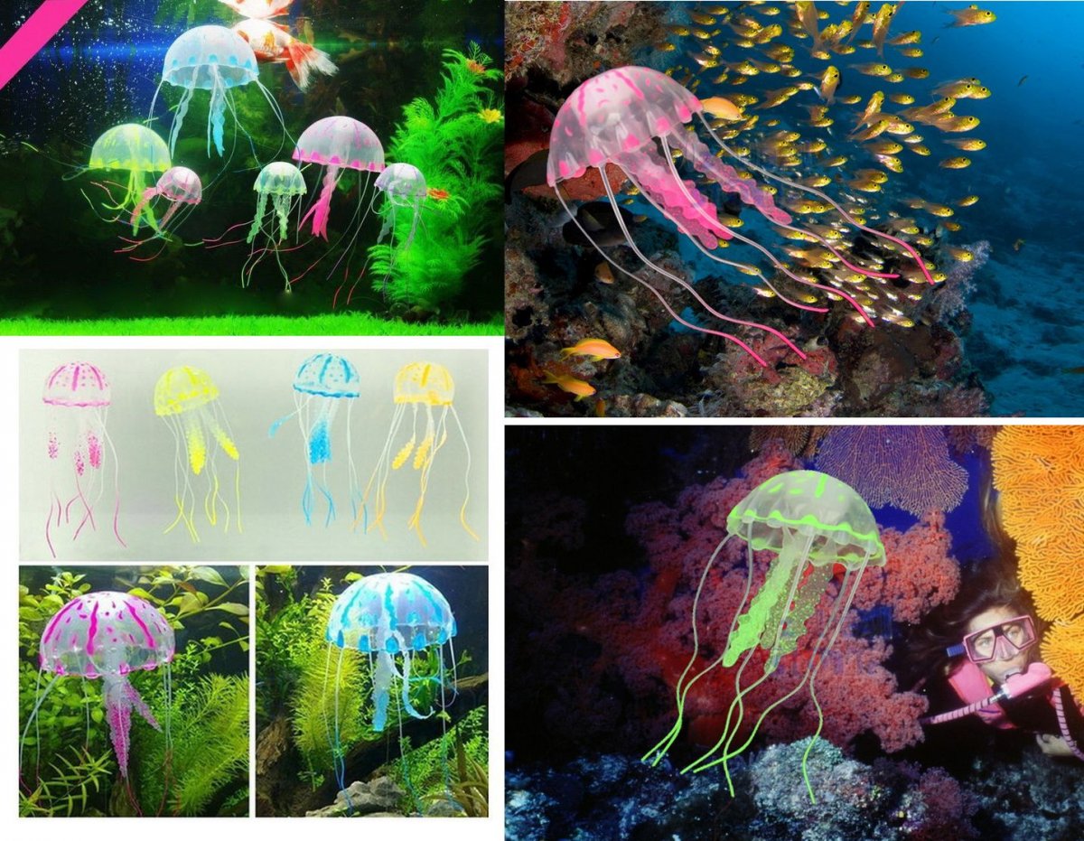 Predám ozdobu do vášho akvária - umelú medúzu s fluoreskujúcim žiariacim efektom ! Perfektná dekorácia pre akvária ! Neuveriteľne detailná imitácia plávajúcej medúzy, pohybuje sa ako živá hore a dole po prúdu vody. Neškodná pre všetky ryby, vhodná pre sladkú aj slanú vodu. Dĺžka cca 21 cm