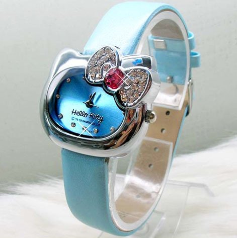 Predám nádherné Hello Kitty dievčenské náramkové hodinky s unikátnym dizajnom, s Hello Kitty motívom a mašličkou na ciferníku vykladanou krásnymi lesklými kamienkami vo farbe bledomodrej. Priemer ciferníka 38 mm, celková dĺžka: 22,5 cm