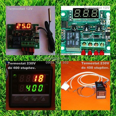 Predam presne digitalne LCD termostaty (presnost 0,1 stupna), vlhkomery s teplomerom a aj samotne teplomery. Vsetko potrebne na stavbu liahen, inkubator, terarium. Taktiez aj na riadenie a kontrolu teploty v bojlery, peci, radiator… Ak, tak zavolajte a mozem poradit. 20 € (termostat 230V do 1000 W + cidlo) 25 € (termostat 230V do 2000 W + cidlo vododotesne 5 € elektroinstalacia 35 € (komplet elektronika termostat+cidlo vodotesne+ elektroinstalacia+vyhrevne telieska+buzirky) 10€ termostat na 12V 27€ termostat 230V az do 400 stupnov 1,5€ za kus ohrevne teliesko 6,5€ vlhkomer s teplomerom 4€ teplomer Tel. O9O3 1O 45 O2 (volat mozte od 8:00 do 19:00 kazdy den aj vikendy, sviatky)