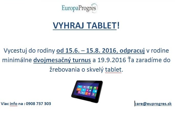 Opatrovanie: Nemecko, Rakúsko!!! 5250€ netto /turnus. + cestovné Umiestnenie IHNEĎ: veľký výber rodín. Odmena: 5250€ netto/turnus. Žiadne sprostredkovateľské poplatky! Voľné rodiny: http://www.euprogres.sk/index.php?m=002-18 KONTAKT: EuropaProgres: 0908737303, email: register@euprogres.sk
