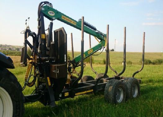Predám švédsku vyvážačku na drevo More Maskiner, r.v. 2015, s TP a ŠPZ, dvojitý rám, boogie náprava, hydraulické natáčacie oje, celková hmotnosť 13,9 t, dĺžka ložnej plochy 4,5 m. Pohon hydraulickej ruky cez vlastné hydraulické čerpadlo s nádržou, ovládanie cez 2 pákový združený hydraulický rozvádzač, dá sa ovládať zo stojanu, zo zeme pri oji traktora, alebo z kabíny traktora. Má hydraulicky výsuvné podperné nohy, 4 páry klaníc, čelná ochranná mreža. Hydraulická ruka 6955 s dosahom 6,93 m, rotátor s rotáciou 360º typ FR 21, drapák typ MG 025. Ihneď k odberu. Možnosť leasingu. Cena 18 000 € + dph + dohoda. Prípadne vymením za traktor, LKT, UKT, iné lesné stroje (Zetor, New Holland, Case, John Deere ). Tel: 0905 450 267