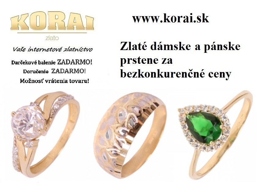 V ponuke internetového zlatníctva KORAI nechýbajú ani zlaté prstene. Podobne ako iné zlaté šperky, aj zlaté prstene ponúkame v rôznych farebných prevedeniach a vzorov. Na výber sú prstene zo žltého zlata, prstene z bieleho zlata, ale aj prstene vyrobené kombináciou žltého a bieleho zlata. Výber je skutočne široký, od bezkameňových zlatých prsteňov, cez zlaté prstene s jedným kamienkom (vhodné aj ako zásnubné prstene), až po elegantné, luxusné zlaté prstene vykladané množstvom zirkónov. Navštívte internetové zlatníctvo KORAI a zaručene si vyberiete. E-shop KORAI. Navštívte e-shop KORAI.
