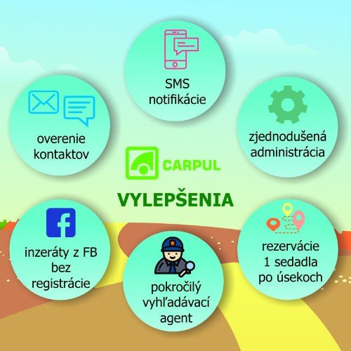 Máš voľné miesta v aute? Ponúkni odvoz kamkoľvek, spoznaj ľudí a ušetri svoje náklady. Cestujúci ti zaplatí po jazde v hotovosti. Potrebuješ niekam cestovať? Nájdi si lacný odvoz, rezervuj ho online a dohodni sa so šoférom. Registrácia, pridávanie inzerátov aj rezervácie sú bezplatné. ===== https://carpul.eu ====== spolujazda, odvoz autom, autostop, lacné cestovanie, zdieľanie jázd, hľadám odvoz