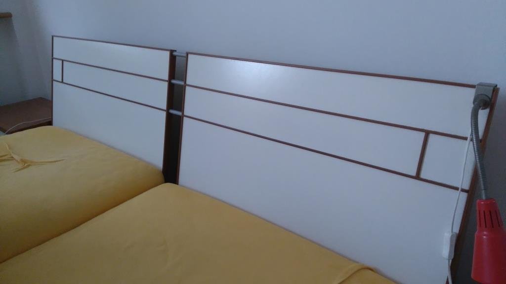 Predávam kompletnú spálňovú zostavu: posteľ (na rošt 2x90 cm, rozmery 180x200 cm), veľkú skriňu (šírka 2,5 m, výška 2,15 m), komoda (5 šuflíkov, hĺbka 40 cm), dva nočné stolíky. Cena: 200 eur