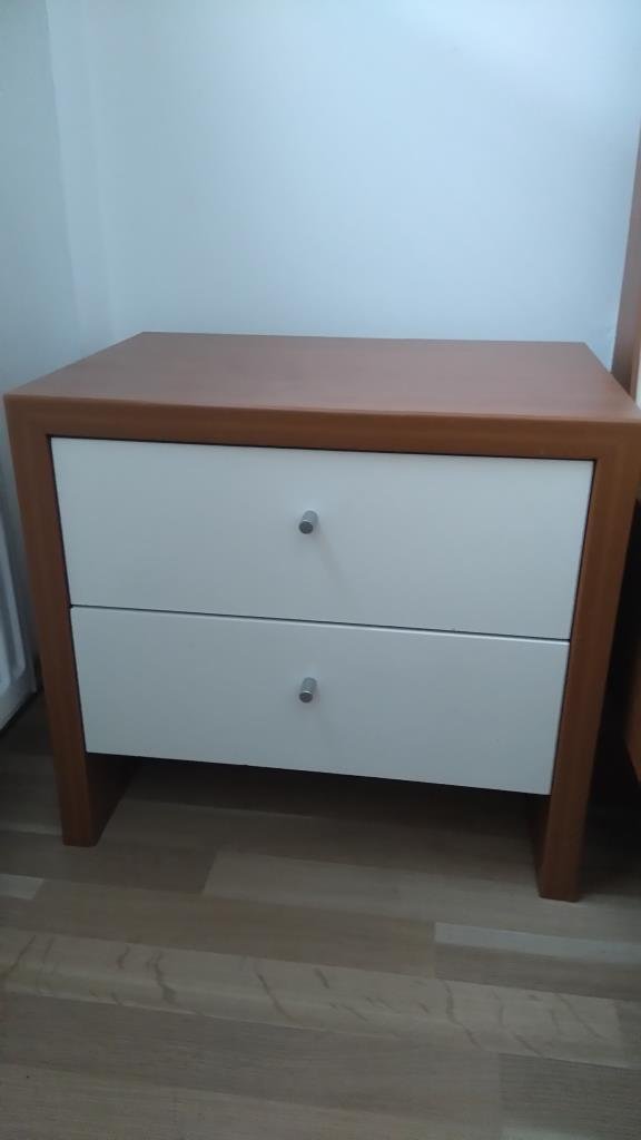 komoda (5 šuflíkov, hĺbka 40 cm), dva nočné stolíky. Cena: 200 eur