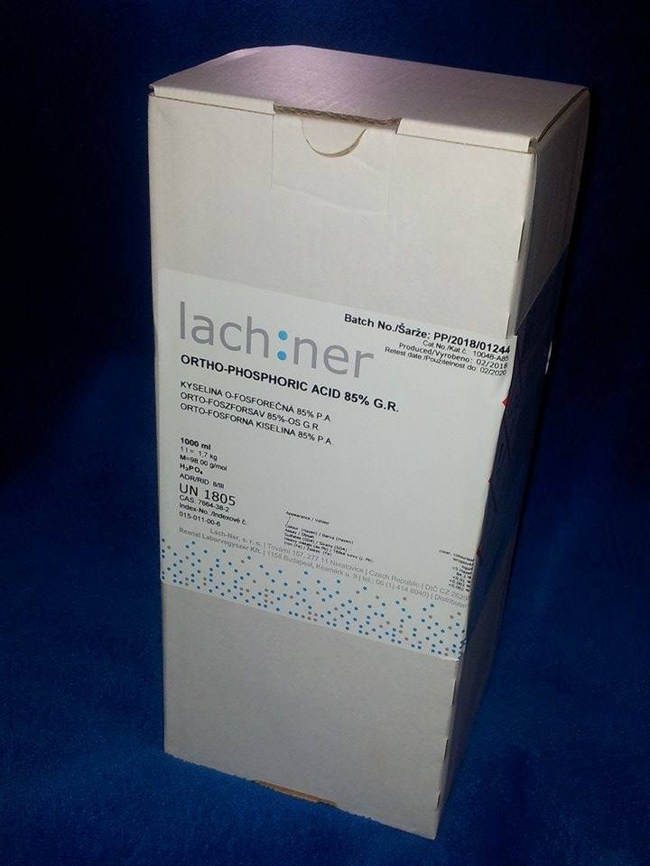 Predám: Fosfor červený amorfný 500g / bal 125,20 €, Jód resublimovaný 500g / bal 145,20 €, Hydroxid sodný 1000g /bal 10,30 €, Kyselina o-fosforečná 1000ml / bal 18,90 €, Kyselina chlorovodíková 1000ml / bal 13,40 €, - V akomkoľvek množstve.