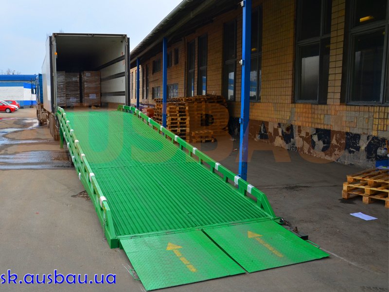 Nakladacia rampa pre kamiony Ausbau. Technické údaje nakladacej rampy Ausbau: nosnosť 6, 8, 10 až 12 ton. Možnosť regulovania výšky pomocou hydraulického systému (od 90 do 165 cm), celková dĺžka mobilnéj nakladacej rampy môže byť 9-13 metrov, veľká platforma. Pomocou mobilnéj nakládacej rampy značne šetríte čas vykladania / nakladania + náklady práce (proces vykladania / nakladania vykonáva len vodič vidlicového vozíka). Kontakty: Tel. +48223906443 https://av-exim.com Nakladacia rampa pre kamiony Ausbau má protišmykovú plochu, pohodlnú, mierne naklonenú plošinu, bočné panely sú zabraňujúce neželaným nárazom nákladu, má spoľahlivý hydraulický systém. Vyrábame aj vlastné rampy do 30t. Viac informácií o mobilných vysokozdvižných vozíkoch Ausbau mȏžete nájsť na adrese: av- exim.com id: 3AOII8 Ako funguje nakladacia rampa pre kamiony Ausbau: nakladač zdvihne okraj rampy a privezie ju do vozidla. Pomocou ručnej hydrauliky jedna osoba stlačením rukoväti hydraulického čerpadla nastaví výšku rampy na požadovanú úroveň (od 90 do 165 cm). Po inštalácii mobilná rampa bezpečne upevnená pomocou dvoch reťazí k vozidlu a kolesá sú pripevnené proti pohybu brzdami (reťaze a blokovacie brzdy sú v komplekte spolu s rampou). Ďalej vysokozdvižný vidlicový vozík prechádza po povrchu rampy do karosérie nákladného vozidla alebo železničného vozňa.