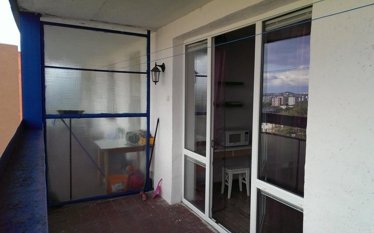balkón, západná slnečná strana, zariadená (chladnička, sedačka