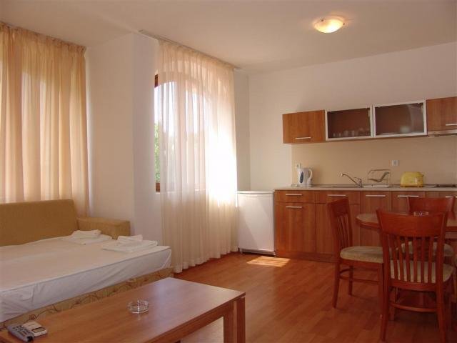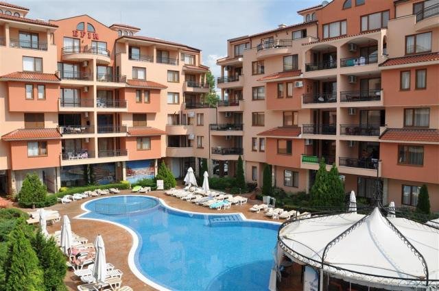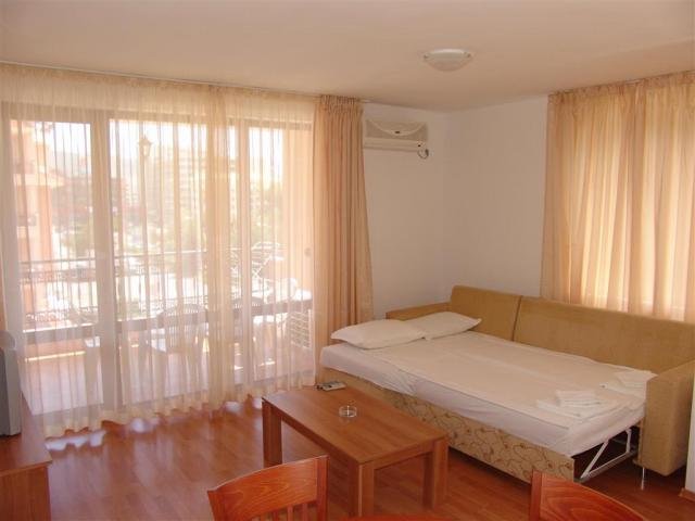 Obľúbený, moderne zariadený apartmánový HOTEL Efir láka hostí najmä svojou polohou v tichšej časti centra Slnečného pobrežia a zároveň blízkosťou piesočnatej pláže Čierneho mora. Rozkladá sa na ploche 3500 m2 a jeho priestranné apartmány ponúkajú vkusné ubytovanie. Chvíle relaxu si môžete vychutnať aj v príjemnej udržiavanej hotelovej záhrade. Stravovanie: bez stravy. Pláž: Krásna piesočnatá pláž s pozvoľným vstupom do vody sa nachádza 200 metrov od hotela. K dispozícii sú ležadlá a slnečníky za poplatok. Orientačné ceny: ležadlo cca 8 leva (4 €)/deň, slnečník cca 8 leva/deň. Na pláži je možnosť vybrať si z množstva atrakcií a športových aktivít spoplatnených extra. Viac informácií nájdete na: www.cakaribik.sk